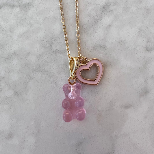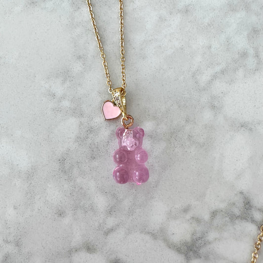 Pink Signature Jelly Bear Heart Necklace